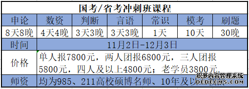 从正公考两个月全程系统笔试课程正在授课中,国省双考冲刺模考课程将在11月2日开始,现在开始接受报名。有需要试听(免费)或报名的,可联系15805173932贺老师,也可联系我13815858212王老师。