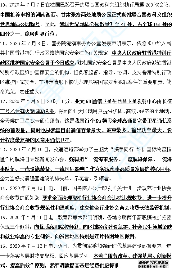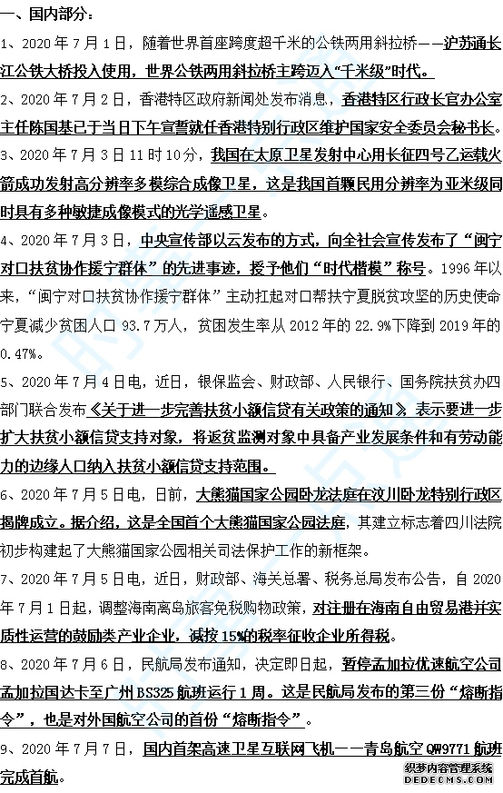 2020年7月国内时事政治热点 主页 > 时政热点 > 时事热点