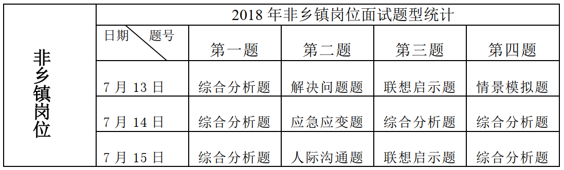 从2018年非乡镇岗位的面试题目中可以看出,在三套题目中,其中有两题重点考察分析评价能力,一题考察情景演说能力,只有一道题目考察考生实际解决问题的能力。对于非乡镇岗位的广大考生而言,侧重对分析思维的训练和语言表达能力的训练,这一点尤为重要。