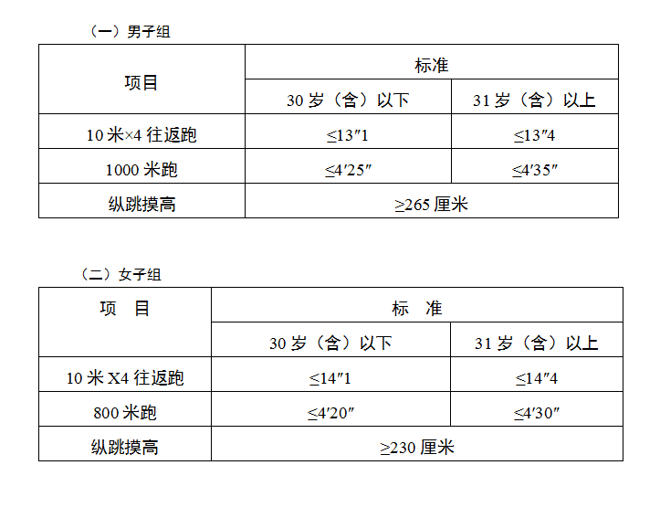 附:警察职位体能测评须知及人民警察体能测评项目和标准(暂行)